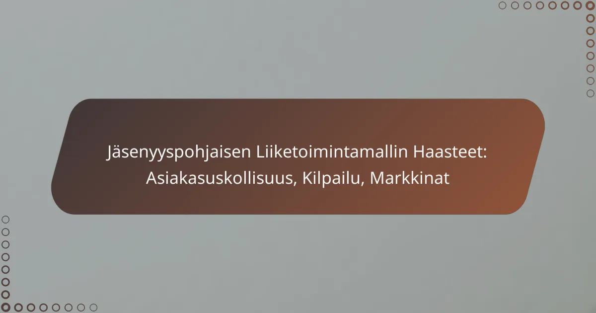 Jäsenyyspohjaisen liiketoimintamallin haasteet liittyvät erityisesti asiakasuskollisuuden ylläpitämiseen, kilpailutilanteeseen ja markkinoiden jatkuvaan muutokseen. Nämä tekijät vaikuttavat suoraan yrityksen kykyyn houkutella ja pitää asiakkaita, mikä on elintärkeää pitkäaikaisten suhteiden rakentamiseksi.