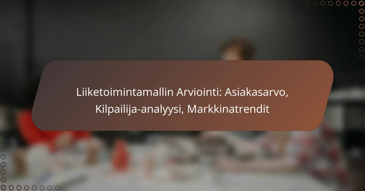 Liiketoimintamallin arviointi on olennainen osa yrityksen strategista suunnittelua, jossa keskeisiä tekijöitä ovat asiakasarvon määrittäminen, kilpailija-analyysi ja markkinatrendien tunnistaminen. Näiden elementtien avulla yritykset voivat kehittää tarjontaansa ja saavuttaa kilpailuetua, mikä on ratkaisevaa nykypäivän dynaamisilla markkinoilla.